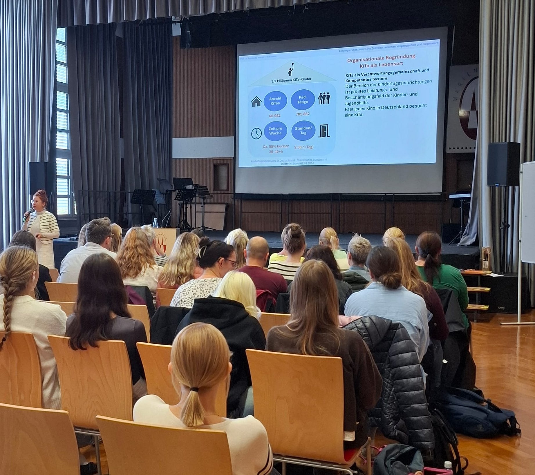 Am 23. September 2025 fand von 9:30-12:00 Uhr der Fachvortrag „Kinderperspektiven im Blick!“ in der Aula der Marienschule Limburg statt. Neben den Studierenden der Höheren Berufsfachschule für Sozialassistenz und der Fachschule für Sozialwesen waren auch Vertreter aus der Praxis als Gäste mit dabei.