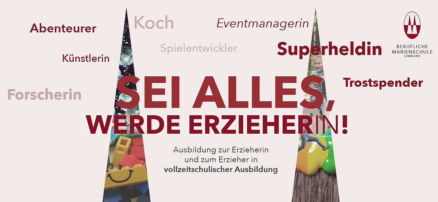 Die Marienschule Limburg arbeitet sehr praxisnah in einer familiären und gemeinschaftlichen Atmosphäre. Der Unterricht entsteht gemeinsam auf der Basis eines professionellen Erfahrungshintergrundes. Wir pflegen eine enge Kooperation mit den Ausbildungsstellen und besuchen unsere Lernenden gerne und regelmäßig in den sozialpädagogischen Einrichtungen. Unsere Schule bietet eine sehr zentrale Lage in der Innenstadt und sehr gute Anbindung an die öffentlichen Verkehrsmittel.