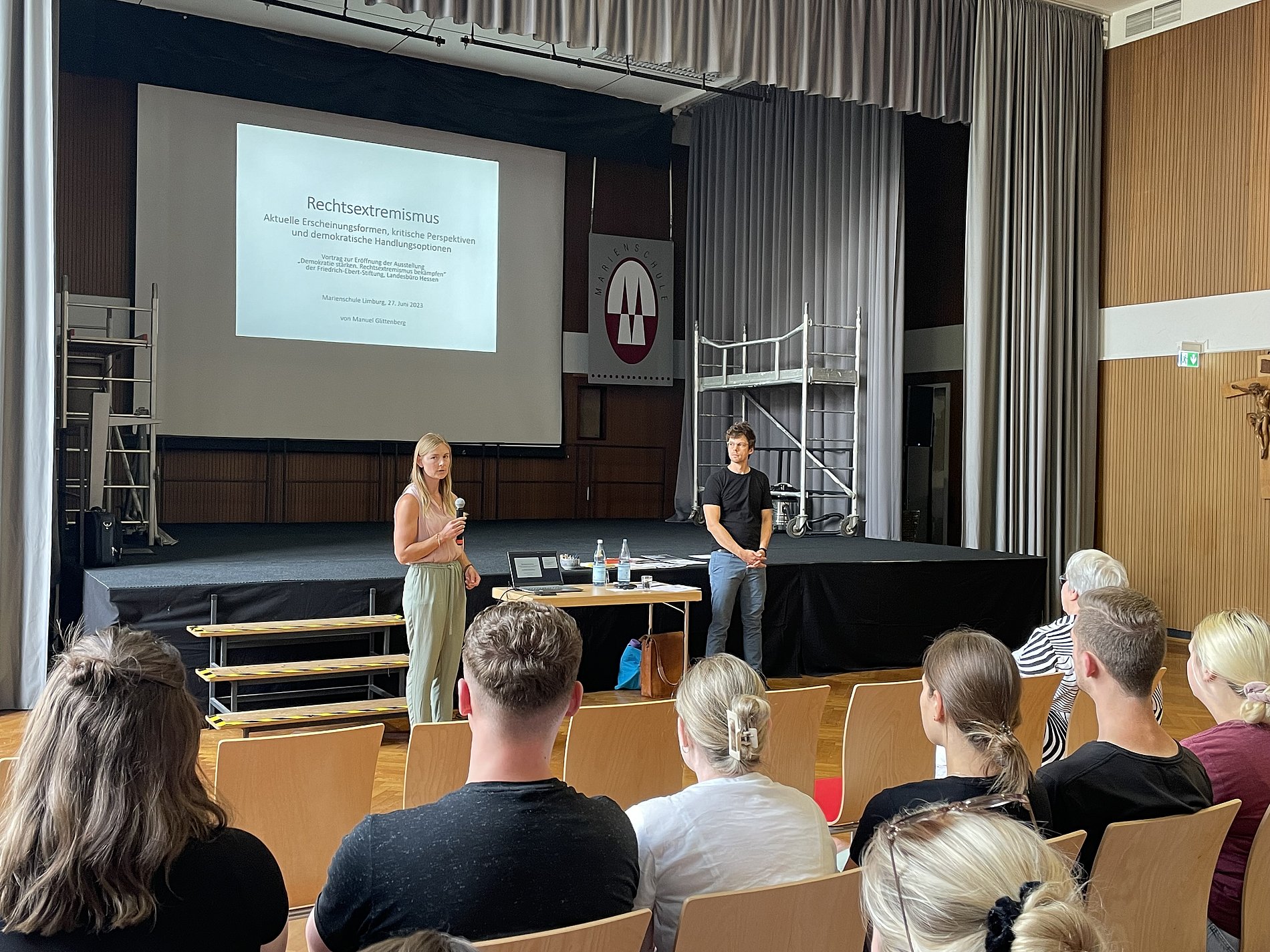 Herr Glittenberg, als ausgewiesener Experte von der Friedrich Ebert Stiftung, zeigte dem beruflichen Teil der Marienschule in Limburg in seinem Vortrag am 27.06.2023, wie wir als Gesellschaft unsere Demokratie aktiv stärken und für ein tolerantes sowie offenes Miteinander eintreten können.