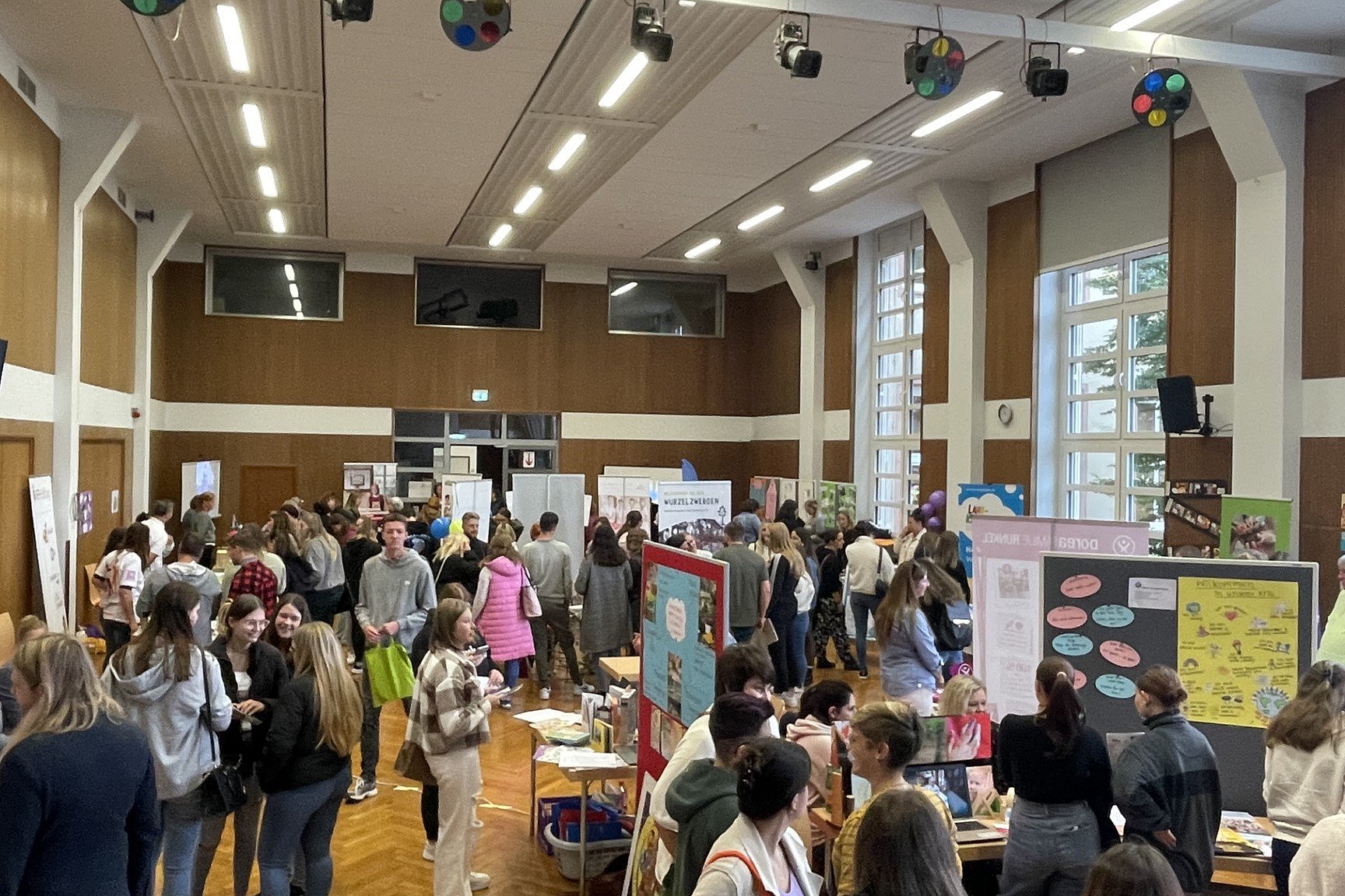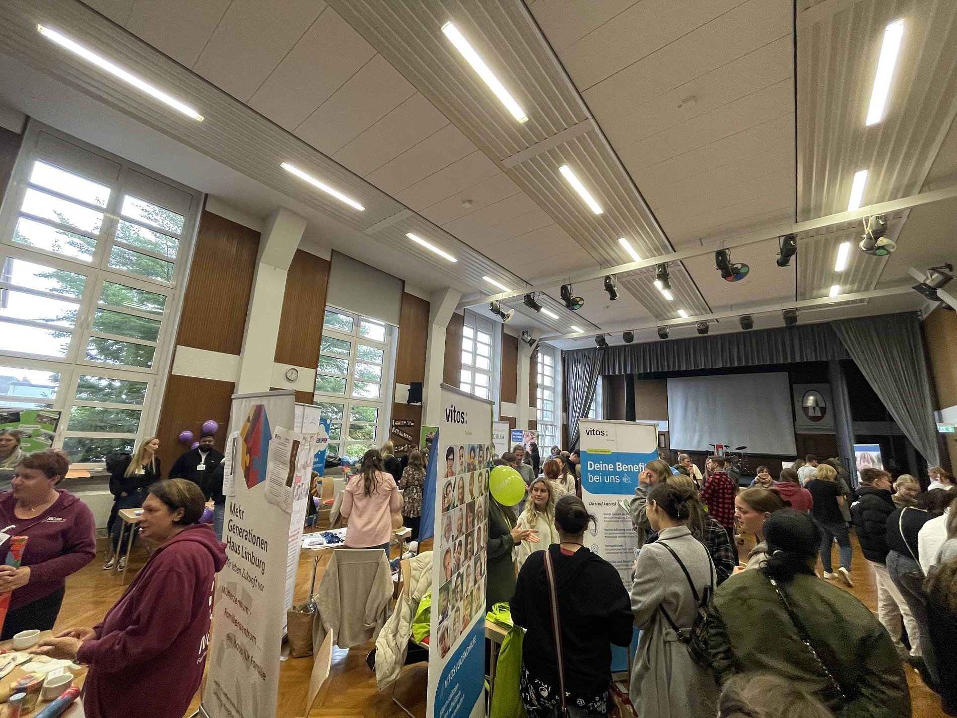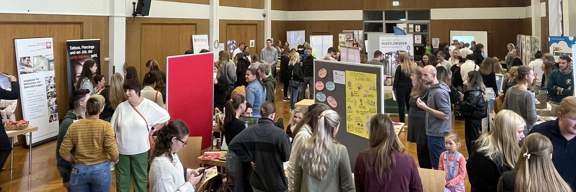 Am 27.09.24 fand in der Marienschule Limburg eine Praxismesse statt. Die Studierenden und alle anderen - an sozialen Berufen Interessierten - hatten hier die Möglichkeit spielerisch konkrete praktische Arbeitsfelder kennenzulernen, sich auszutauschen und gegebenenfalls zukunfstweisende Kontakte herzustellen.